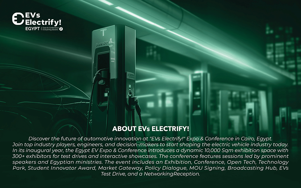 EVs 2025 takes place at the Egypt International Exhibition Centre (EIEC), a fully equipped and flexible structure of hall (4) that provide over 10,000 m2 of exhibition space.